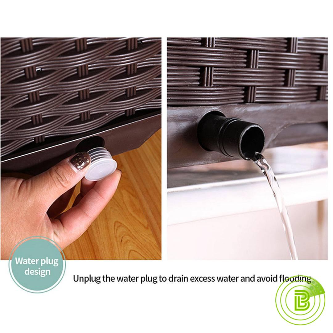 SOGA Raised Garden Bed has a SELF-WATERING PATTERN. Designed in a way that you conserve water - stop the water leaking, seeping, or evaporating so you, in turn, less usage. It has a water barrier & bottom board design, filtering excess from the soil and storing it in the bottom boards -helping plants absorb water and nutrition completely. Drains holes with small buttons providing good breathability for plant growth and drains excess water when needeed