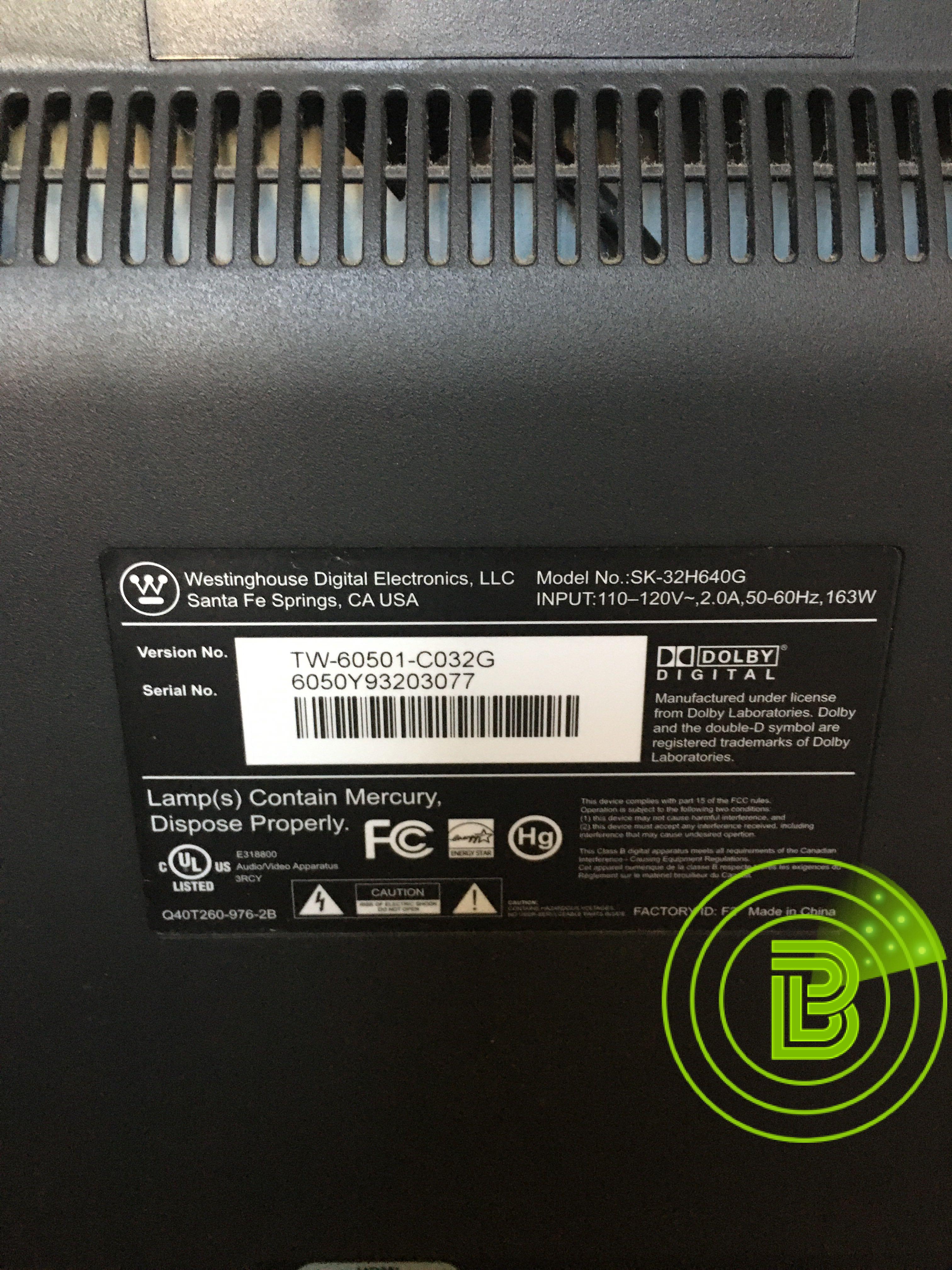 32” flat screen Westinghouse T.V. It works perfectly